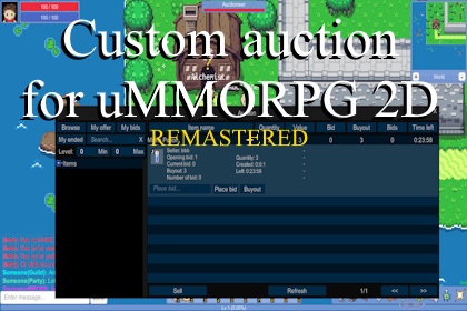 **TO USE THIS ASSET YOU NEED THE FOLLOWING** Unity (free) uMMORPG 2D REMASTERED (paid) **TO USE THIS ASSET YOU NEED THE FOLLOWING** Help, Question, Request: (Forum) (Discord) Custom auction for uMMORPG 2D REMASTERED – Auction and create auction interface. – Tree view to search by category. – Bid, outbid, buyout, timed auction. – Browse, My […]
